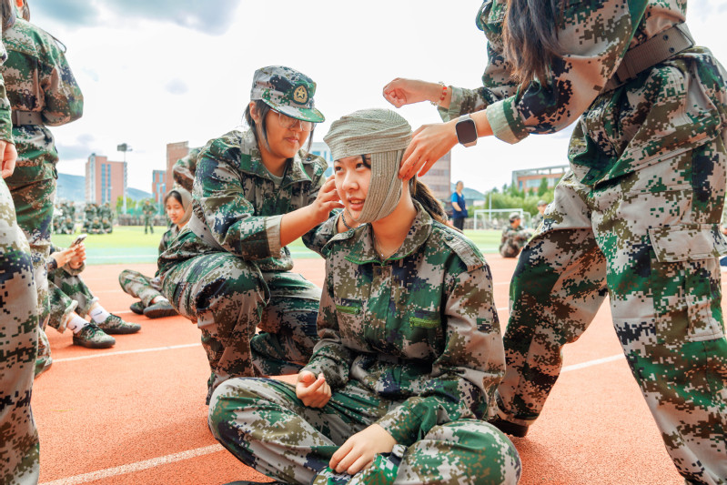 18日上午,学院在风雨操场举办了急救技能培训活动。红十字会的讲师通过真实案例和模拟演示,详细讲解了各项急救技术的操作要点。参训学员在教官和助教的指导下,分组进行了胸外按压、人工呼吸、绷带三角巾包扎等实操训练,现场学习氛围浓厚,互动频繁。18日下午及19日全天,学员们需依次参加线上考核和实操考核,全部通过后将获得由连云港市红十字会颁发的培训证书。